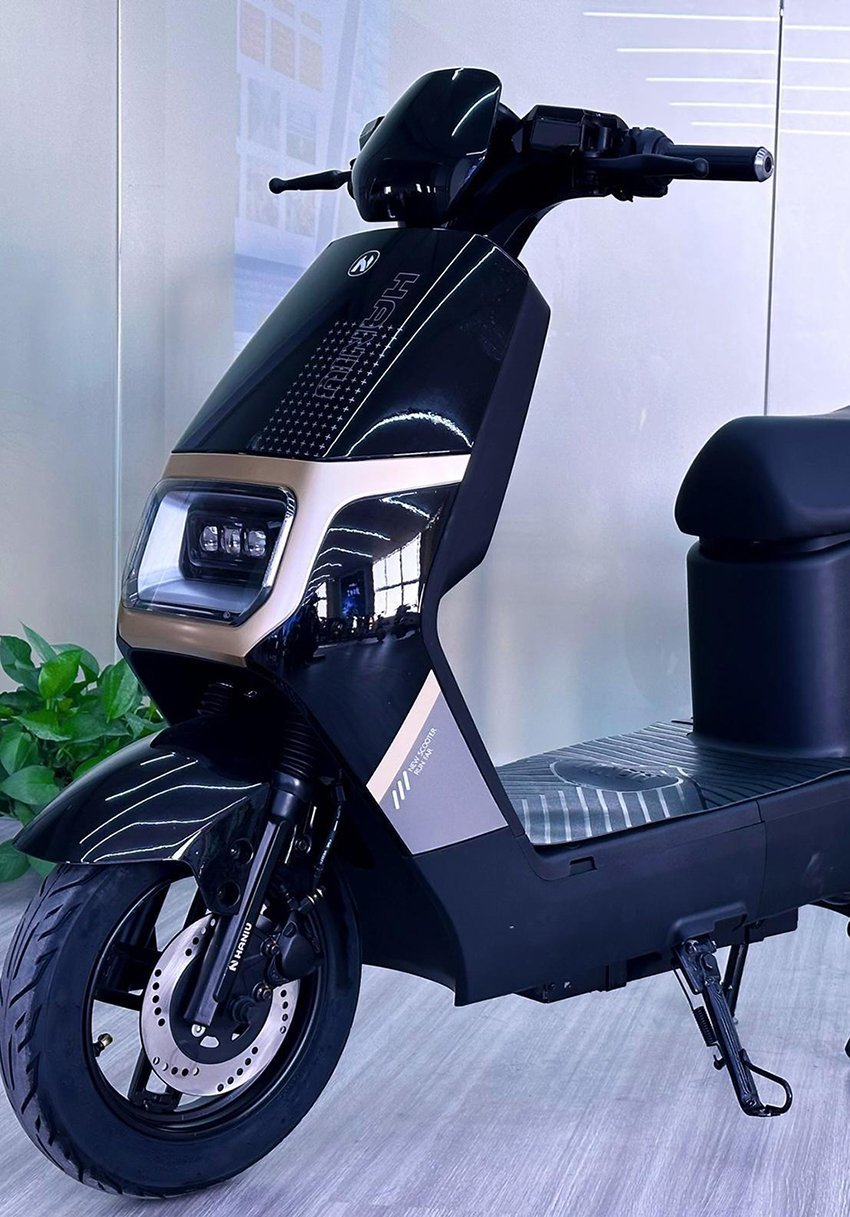 48/60V 20AH lead-acid battery, 215-24H motor, 9-tube controller, includes dual remote control anti-theft device, 827 tube aluminum cylinder hydraulic front and rear shock absorbers, hydraulic rear shock absorbers, front 3.0-10” vacuum tires, front opposed cylinder 180 disc brakes, rear center 110 hub brakes, LED instrument panel, with USB charger, aluminum rear coat rack (with backrest), high-brightness convex mirror headlights, three-speed transmission, P gear