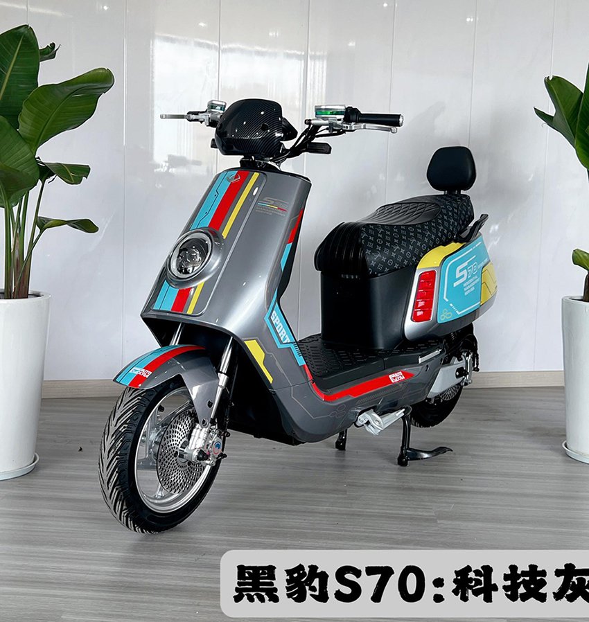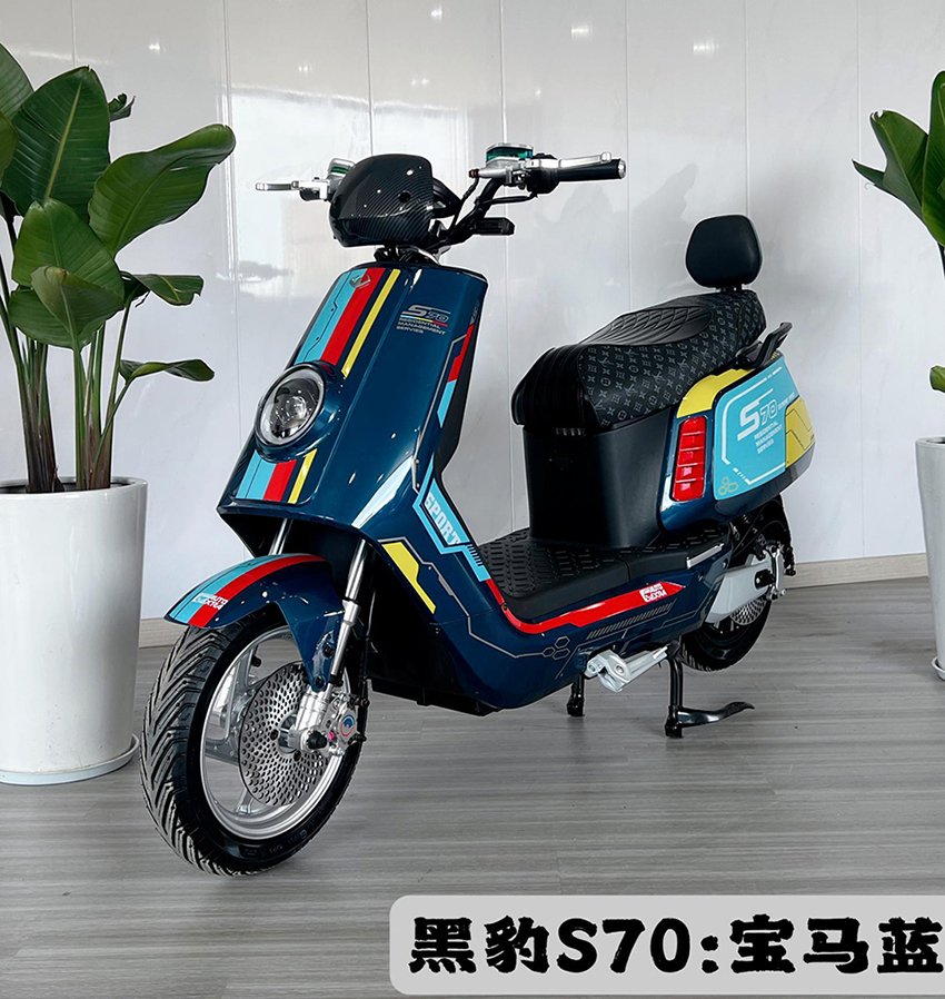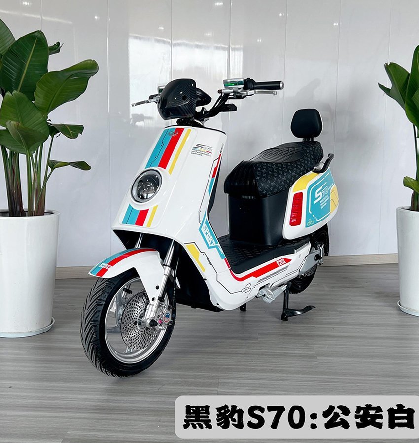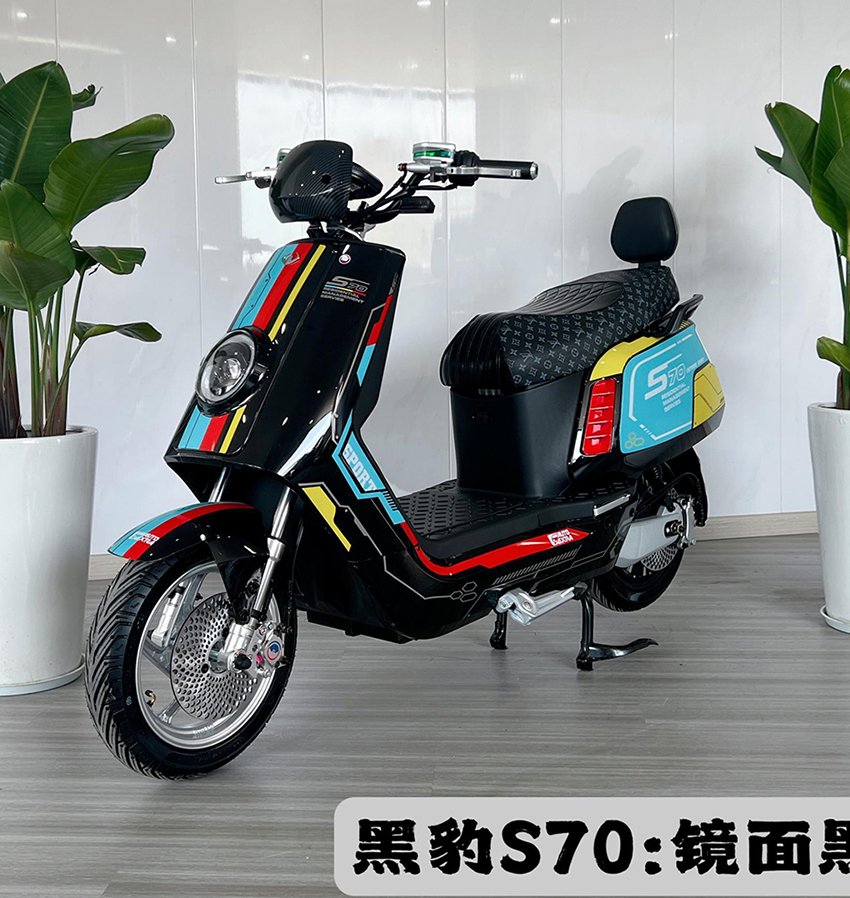 Black Panther S70 – Backrest Version: 48-60-72V 20-30AH / Transit 35H 2000W Motor / Black Panther Dual-Layer Solid-State Self-Cooling Controller / Front and Rear 220mm Large Disc Brakes CNC-Changing Crab-Shaped Opposed Disc Brakes with Rear Linkage Disc Brake Front and rear 4.0mm thickened teardrop discs / High-temperature 6 square millimeter discharge inserts / Gumande 90/80-12 semi-slick tires / 48mm thickened 2.5mm high-speed frame body / Aluminum coat hanger + backrest / Thickened seamless forged steering wheel / 30mm CNC modified hydraulic front shock absorber / 30mm dual hydraulic thickened adjustable rear shock absorber / CNC modified aluminum handlebar base / 28mm thickened heat-treated handlebar / Niu-style running light LCD instrument panel / Water transfer printing windshield / Safety P gear parking + cruise control / Front seven-color adjustable lens high-brightness headlight / Rear taillight adjustable seven-color headlight / Flowing lights / High-density high and low comfort high-end color-separated fashionable leather ambient lighting / GPS positioning / Integrated aluminum single stand / Niu-style aluminum alloy swingarm