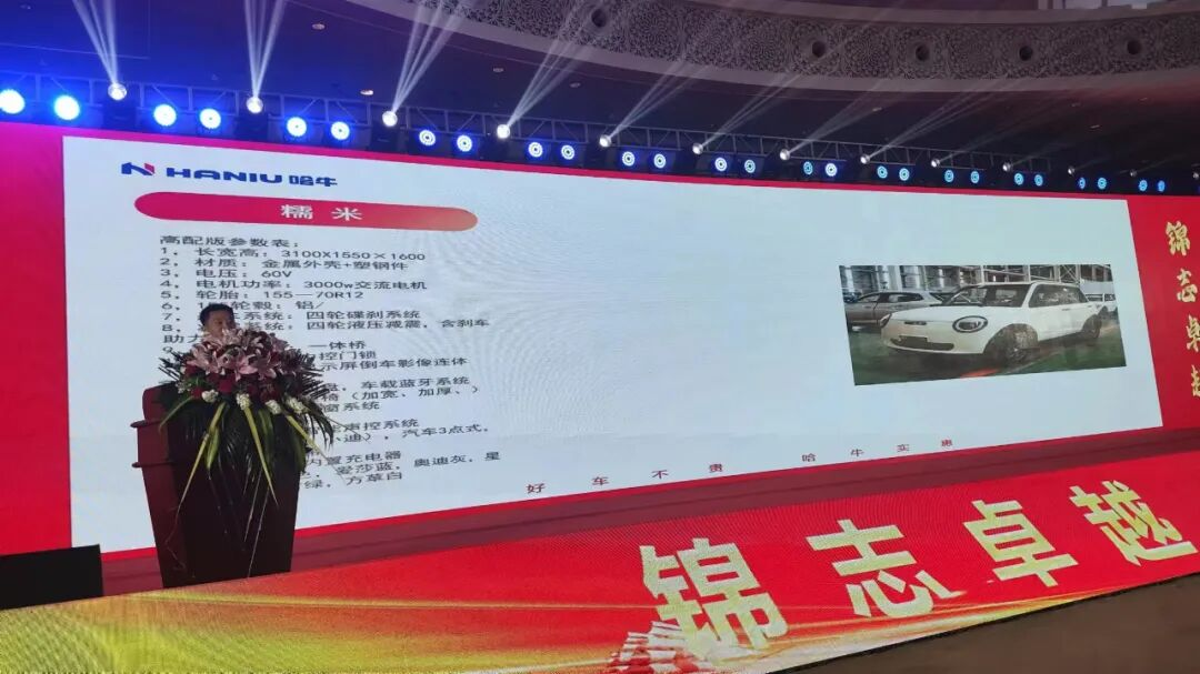This year, Haniu Electric Vehicles has expanded its operations in Wuxi and Fengxian, establishing production bases for electric motorcycles and cargo tricycles in the most influential electric two- and three-wheeled vehicle production bases nationwide, as well as a mini-car production base in Jinxiang. With this, Haniu Electric Vehicles has officially completed its full-category industrial layout, continuously strengthening its competitive advantage in the industry. Super-hot products were also launched at this conference: a full range of products including basic two-wheelers, luxury two-wheelers, electric motorcycles, leisure tricycles, cargo tricycles, and mini electric cars, giving it a greater competitive edge in the market.